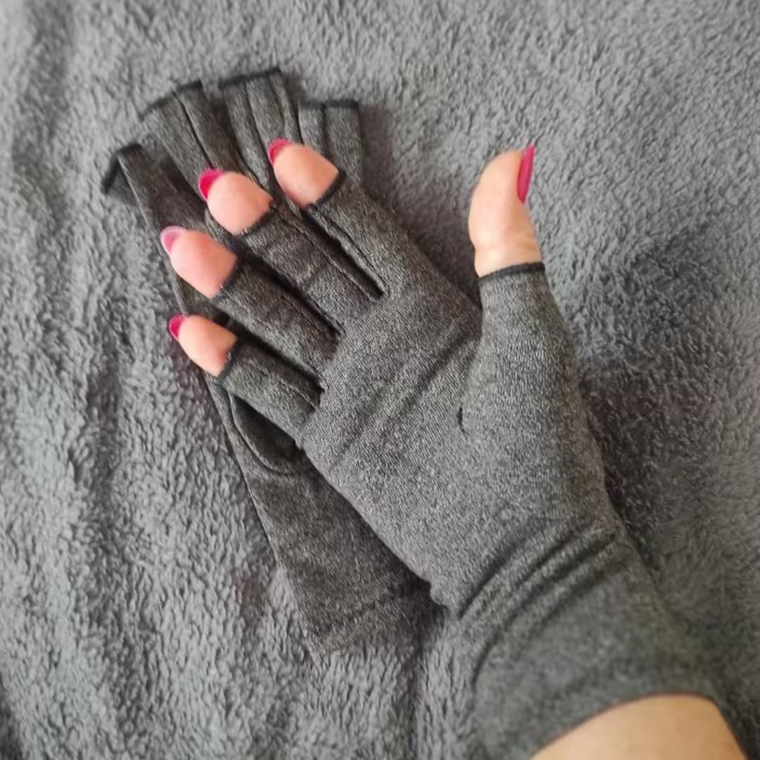 Dzięki temu rękawiczki mogą pomagać zmniejszyć uczucie bólu, obrzęku i sztywności, a także poprawiać komfort ruchu i codziennego używania dłoni.