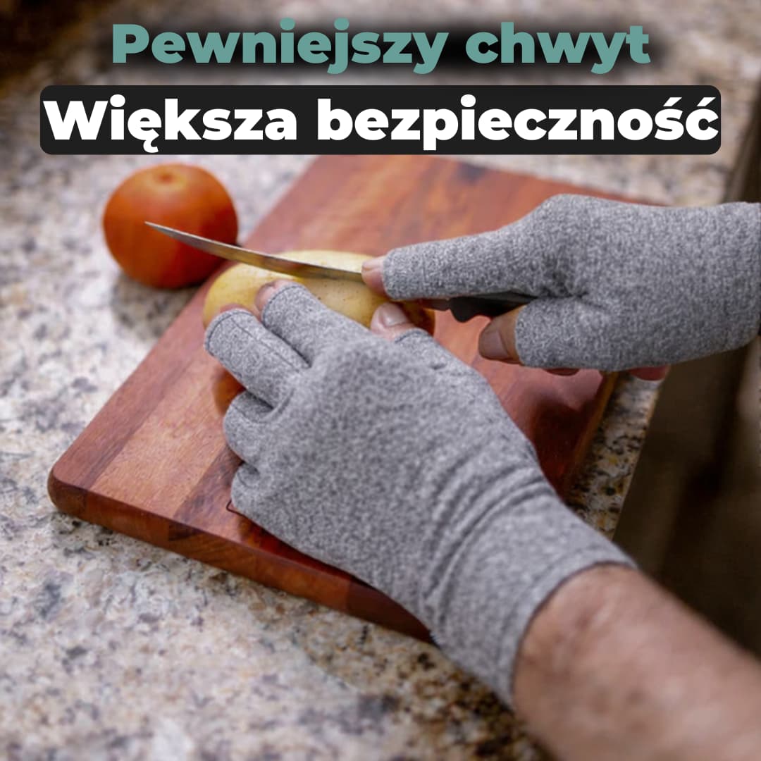 Rękawiczki kompresyjne pomagają utrzymać pewniejszy chwyt i lepszą kontrolę ruchu, co zwiększa komfort i bezpieczeństwo w kuchni, w domu i na co dzień.